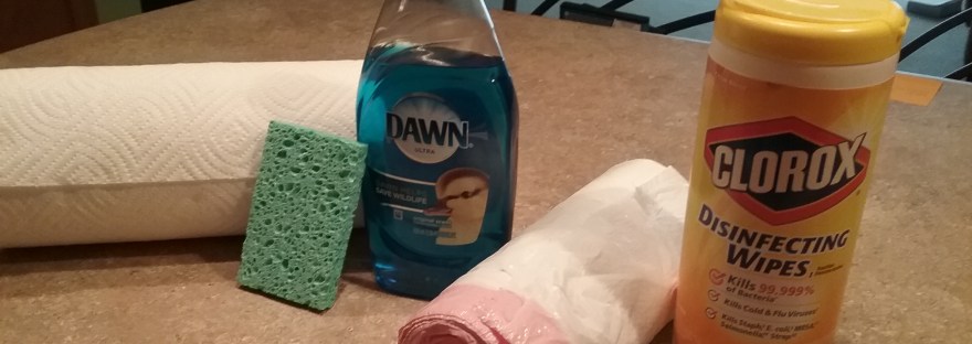 - Sanitize your counters. I use disinfectant wipes and wipe down all of my surfaces that I’ll be preparing food on. Preparing this much food at once has me a more than a little concerned about sanitation. I also wipe down the surfaces when I’m done and sometimes even halfway through depending on how much raw meat I am cutting up. I’m messy with food prep as it is, so a handy container of wipes is a necessity of mine. Word to the wise, make sure after you disinfect that you also check the instructions on the wipes. Frequently you’ll need to wipe down surfaces after a disinfectant so that it doesn’t contaminate your food.